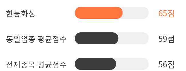 AI 인공지능 분석을 통한 한농화성의 종목 종합 스코어는 65점을 기록했다.