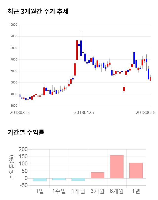 [그림 1] 최근 3개월 간 주가 추세 및 기간별 수익률
