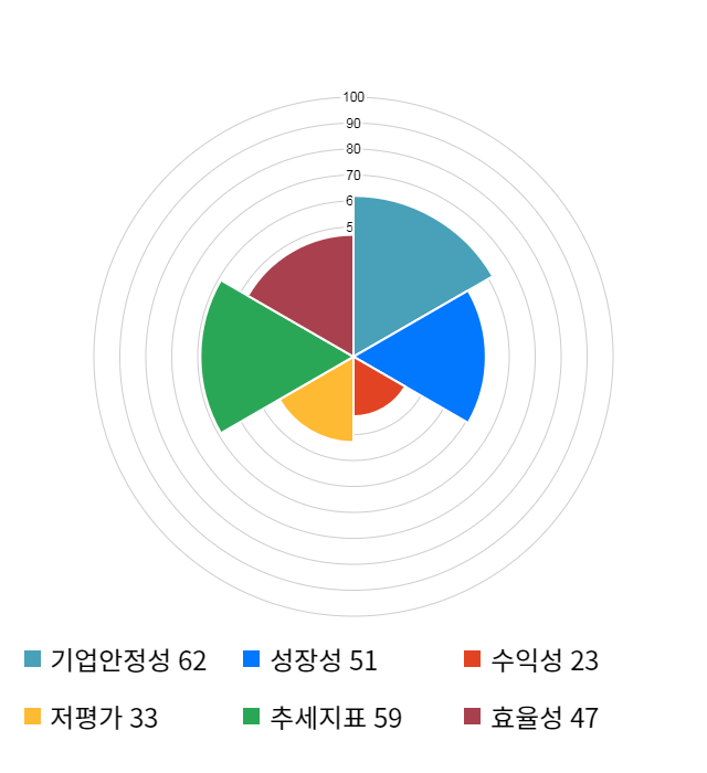 AI 인공지능 종목 분석 시스템을 이용해 성장성, 수익성, 효율성, 안전성, 저평가성, 추세 등 주가 수익률에 영향을 줄 수 있는 6가지 핵심 투자 지표를 점수화하여 종목의 투자 매력도를 계산해보았다.
