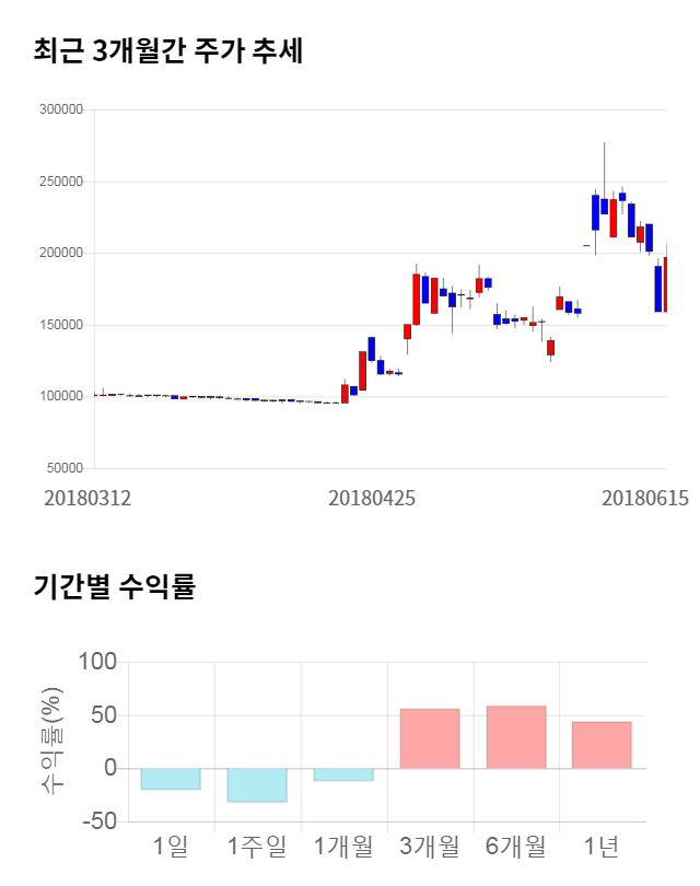 [그림 1] 최근 3개월 간 주가 추세 및 기간별 수익률