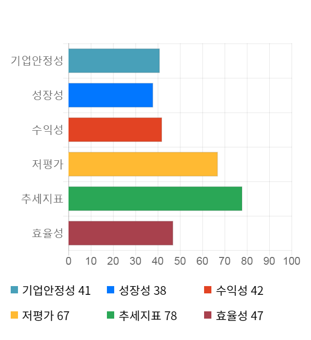 한국석유는 특히 중기추세 측면에서 가장 높은 점수는 기록했는데, 전체 시장 내 42위를 기록하며 상위 2.06%에 위치했다. 업종별로는 8위를 기록하며 상위 3.14%에 위치했다.