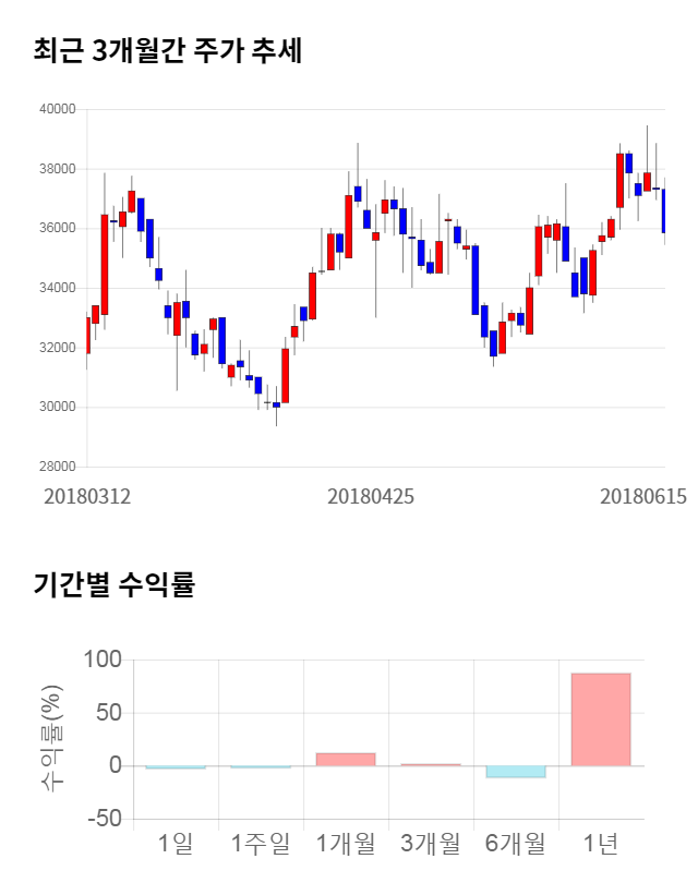 [그림 1] 최근 3개월 간 주가 추세 및 기간별 수익률