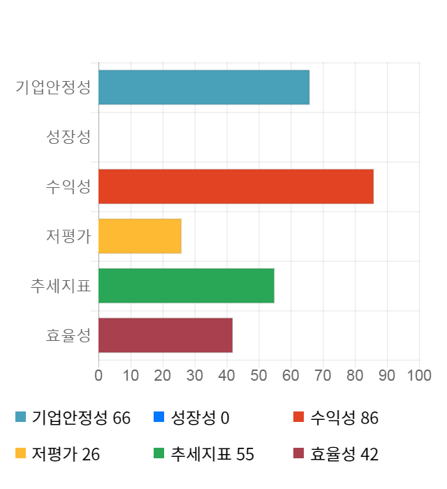 AI 인공지능 종목 분석 시스템을 이용해 성장성, 수익성, 효율성, 안전성, 저평가성, 추세 등 주가 수익률에 영향을 줄 수 있는 6가지 핵심 투자 지표를 점수화하여 종목의 투자 매력도를 계산해보았다.