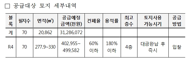 공급예정금액은 3.3㎡당 478~550만원 수준이며, 최고가 입찰 방식으로 계약자를 결정하게 됩니다.