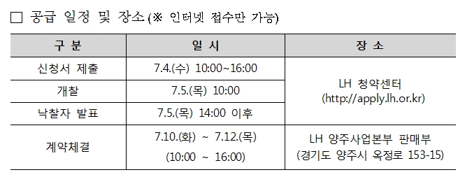 인터넷으로만 신청할 수 있으며, 기타 자세한 사항은 LH청약센터 공고를 참고하거나, LH 양주사업본부로 문의하면 됩니다.