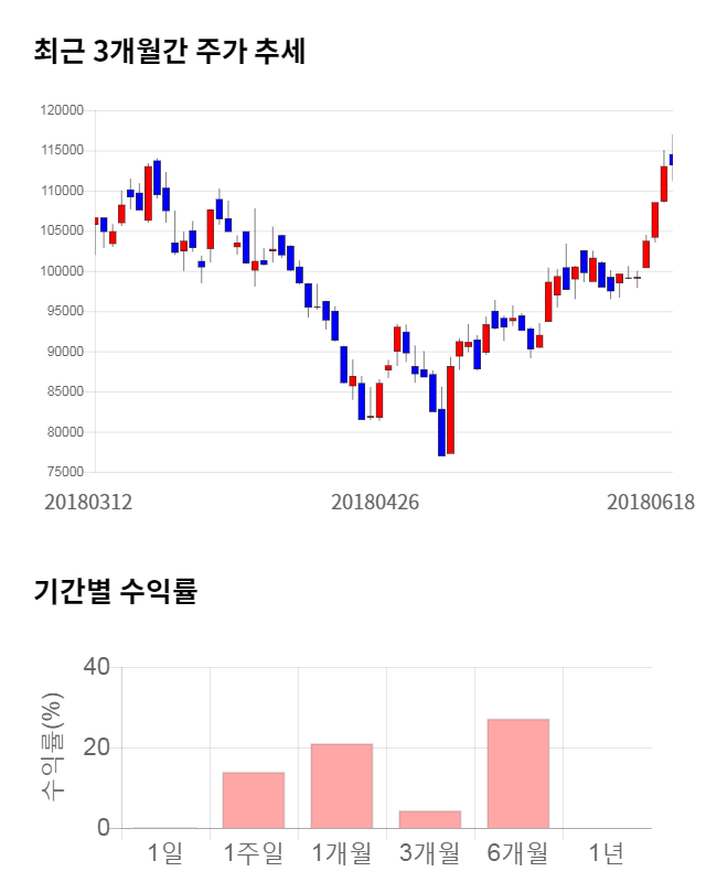 주가 모멘텀은 좋은 편에 속했다. 최근 6개월 수익률은 27.28%의 상승폭을 기록했다. 최근 1개월 수익률 또한 21.12% 상승하며 좋은 모멘텀을 보이고 있다.