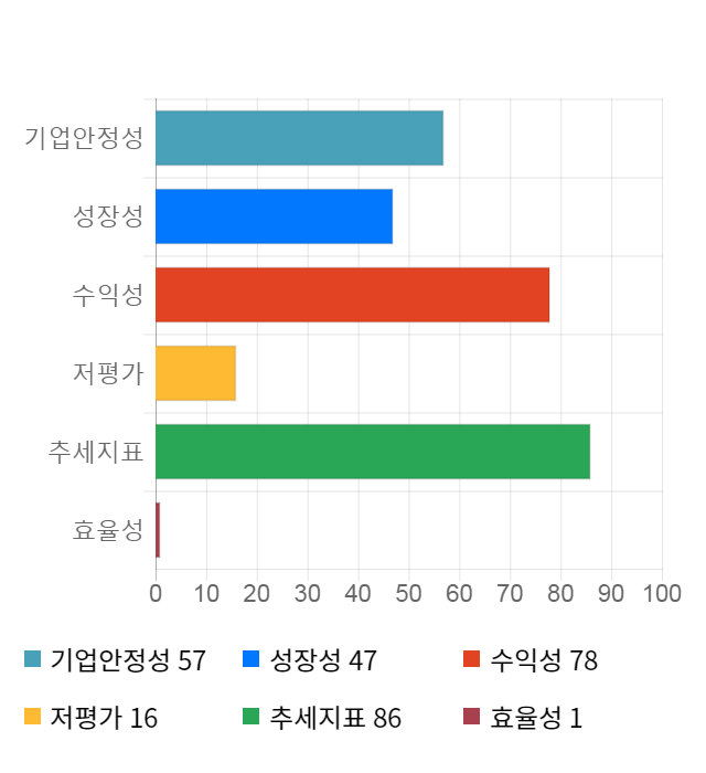AI 인공지능 종목 분석 시스템을 이용해 성장성, 수익성, 효율성, 안전성, 저평가성, 추세 등 주가 수익률에 영향을 줄 수 있는 6가지 핵심 투자 지표를 점수화하여 종목의 투자 매력도를 계산해보았다.