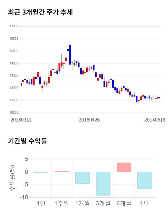 [그림 1] 최근 3개월 간 주가 추세 및 기간별 수익률
