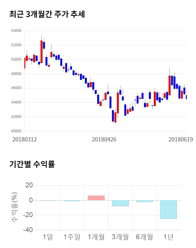 [그림 1] 최근 3개월 간 주가 추세 및 기간별 수익률