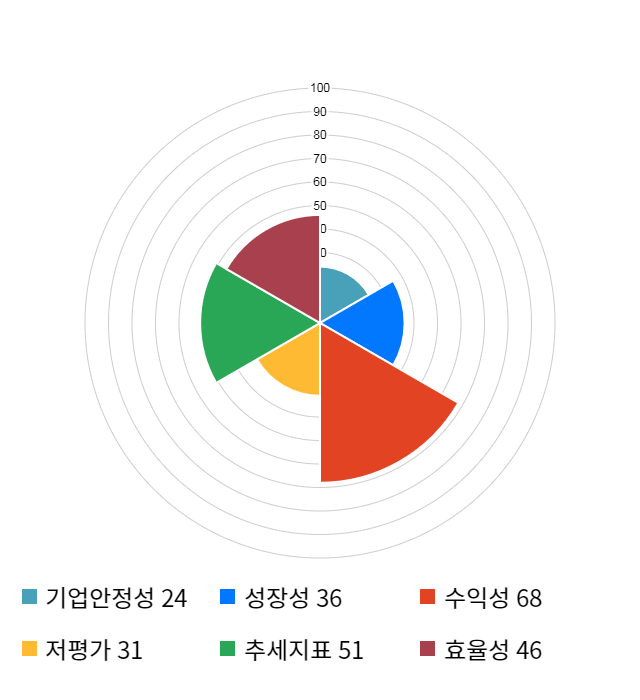 AI 인공지능 종목 분석 시스템을 이용해 성장성, 수익성, 효율성, 안전성, 저평가성, 추세 등 주가 수익률에 영향을 줄 수 있는 6가지 핵심 투자 지표를 점수화하여 종목의 투자 매력도를 계산해보았다.
