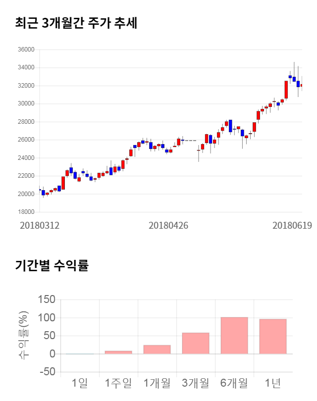 주가 모멘텀은 좋은 편에 속했다. 최근 6개월 수익률은 102.06%의 상승폭을 기록했다. 최근 1개월 수익률 또한 24.81% 상승하며 좋은 모멘텀을 보이고 있다.