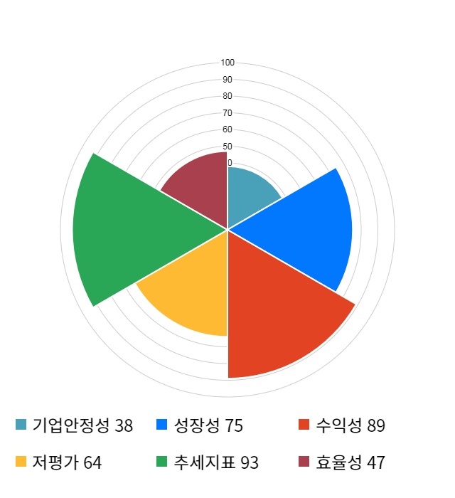 AI 인공지능 종목 분석 시스템을 이용해 성장성, 수익성, 효율성, 안전성, 저평가성, 추세 등 주가 수익률에 영향을 줄 수 있는 6가지 핵심 투자 지표를 점수화하여 종목의 투자 매력도를 계산해보았다.