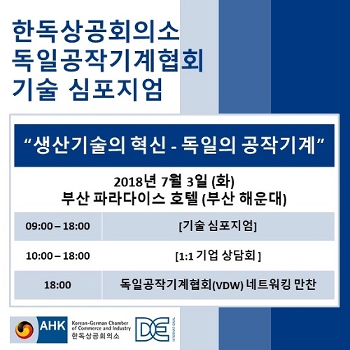 한독상공회의소(KGCCI)는 오는 7월 3일(화) 부산 파라다이스 호텔에서 독일공작기계협회(VDW)와 공동으로 `생산기술의 혁신-독일의 공작기계` 주제로 심포지엄을 개최한다고 밝혔다.
