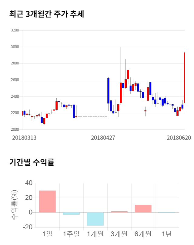 [그림 1] 최근 3개월 간 주가 추세 및 기간별 수익률
