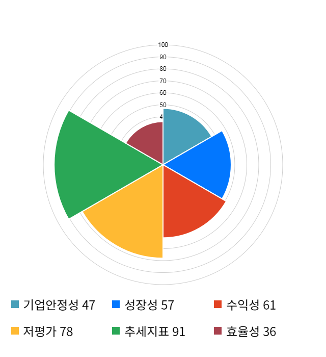 AI 인공지능 종목 분석 시스템을 이용해 성장성, 수익성, 효율성, 안전성, 저평가성, 추세 등 주가 수익률에 영향을 줄 수 있는 6가지 핵심 투자 지표를 점수화하여 종목의 투자 매력도를 계산해보았다.