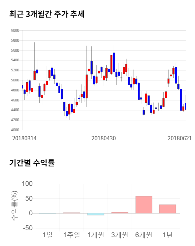 [그림 1] 최근 3개월 간 주가 추세 및 기간별 수익률