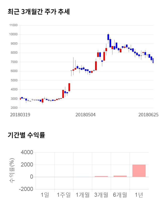 [그림 1] 최근 3개월 간 주가 추세 및 기간별 수익률