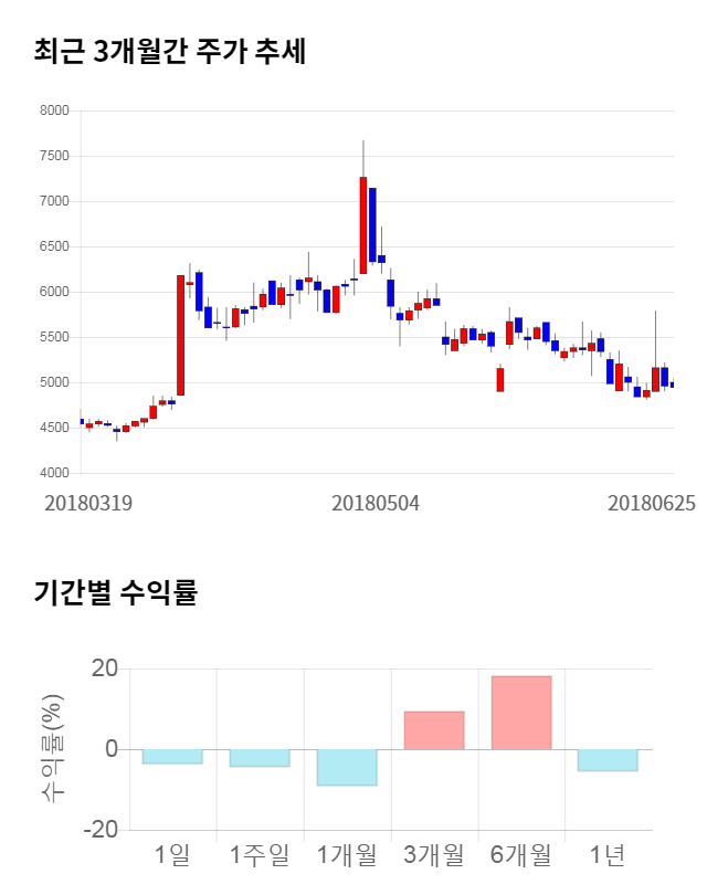 [그림 1] 최근 3개월 간 주가 추세 및 기간별 수익률