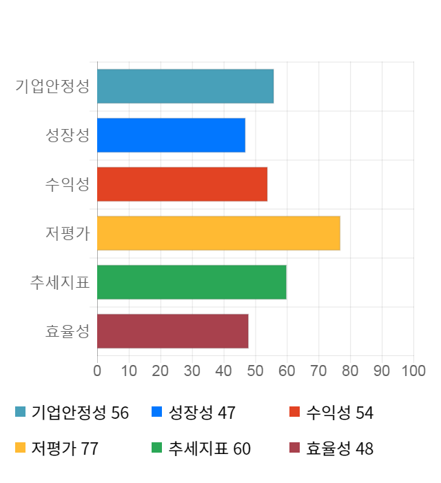 저평가 점수는 기업의 가치 대비 주가의 수준이 어느 정도인지를 나타낸다.