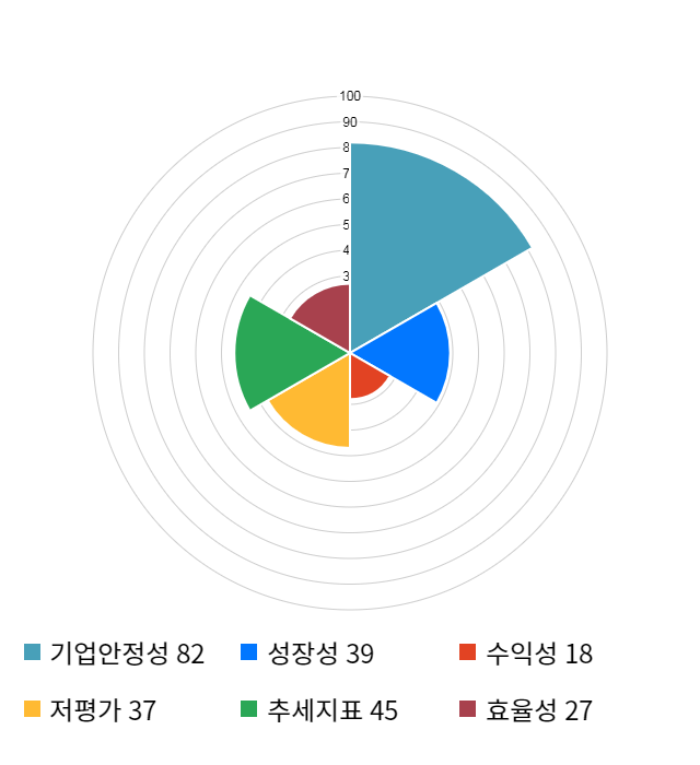 AI 인공지능 종목 분석 시스템을 이용해 성장성, 수익성, 효율성, 안전성, 저평가성, 추세 등 주가 수익률에 영향을 줄 수 있는 6가지 핵심 투자 지표를 점수화하여 종목의 투자 매력도를 계산해보았다.