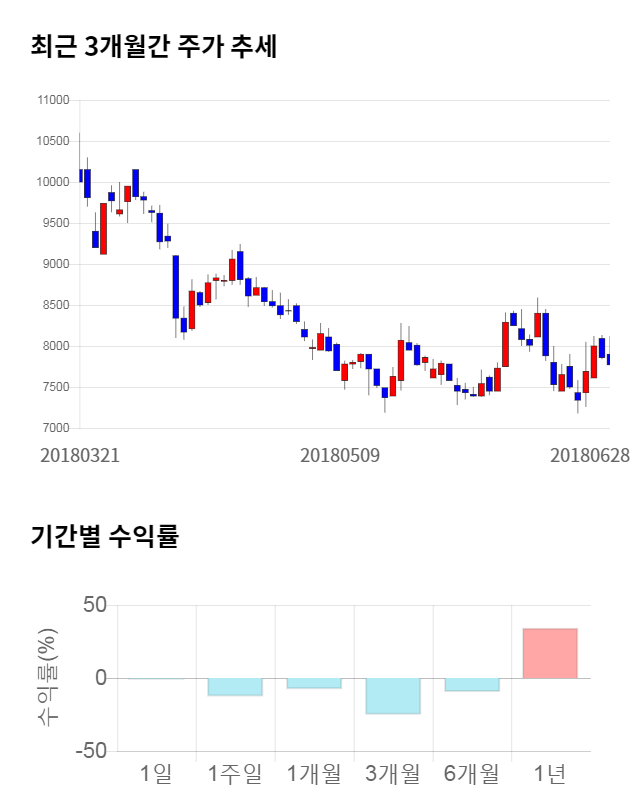 [그림 1] 최근 3개월 간 주가 추세 및 기간별 수익률