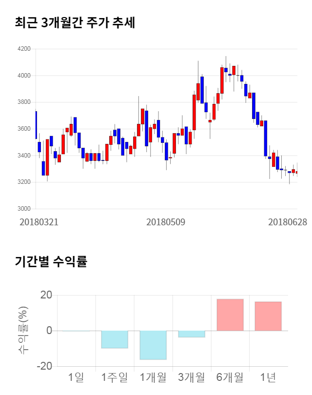 [그림 1] 최근 3개월 간 주가 추세 및 기간별 수익률