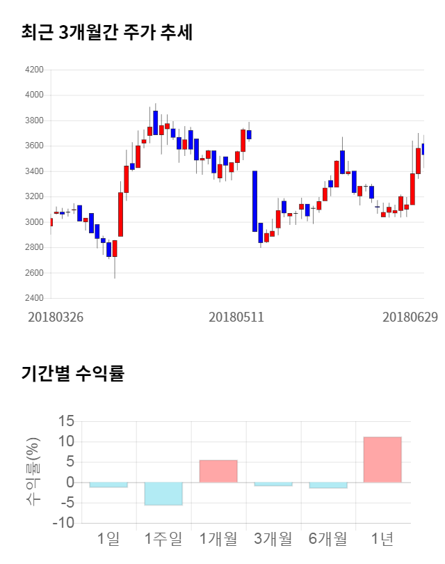 [그림 1] 최근 3개월 간 주가 추세 및 기간별 수익률