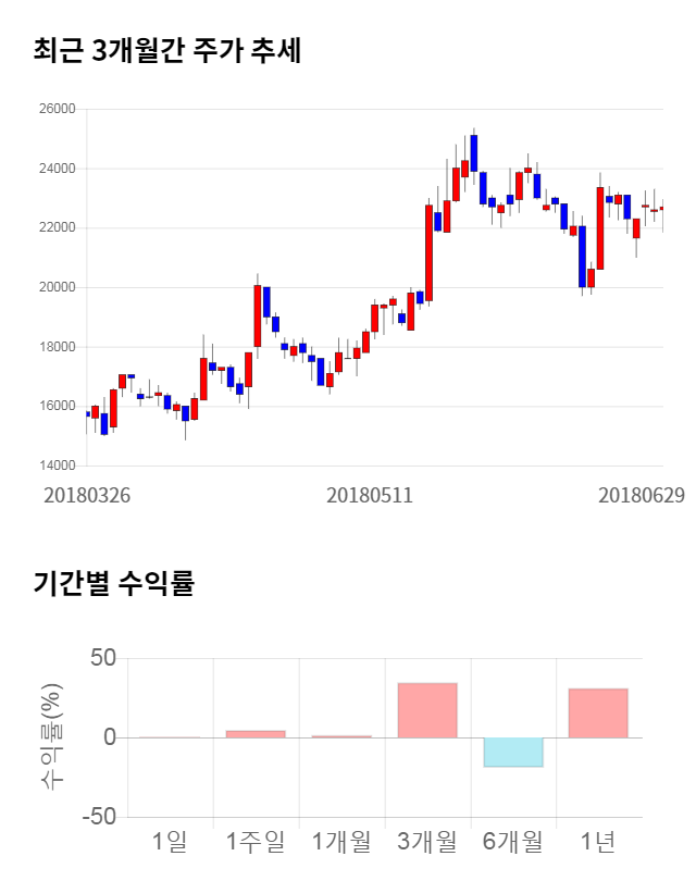 [그림 1] 최근 3개월 간 주가 추세 및 기간별 수익률