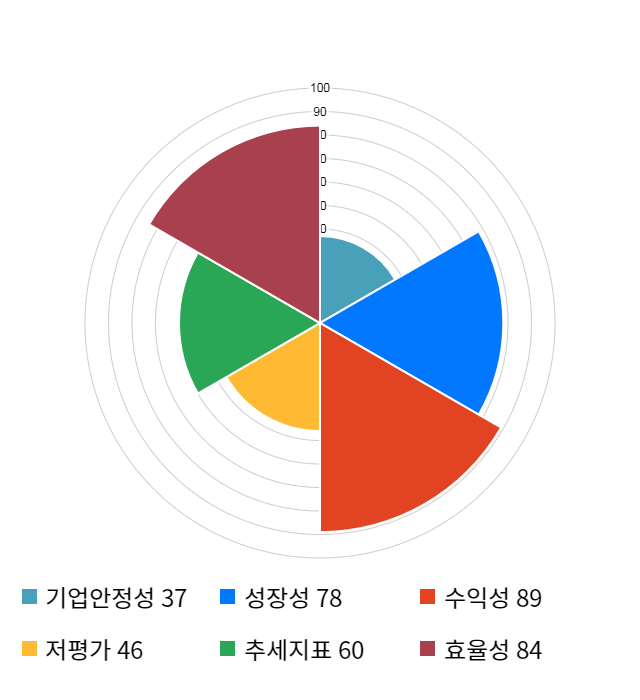 AI 인공지능 종목 분석 시스템을 이용해 성장성, 수익성, 효율성, 안전성, 저평가성, 추세 등 주가 수익률에 영향을 줄 수 있는 6가지 핵심 투자 지표를 점수화하여 종목의 투자 매력도를 계산해보았다.