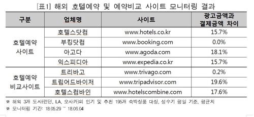 해외 호텔예약 사이트 4곳 중 부킹닷컴을 제외한 3곳, 해외 호텔예약 비교사이트 3곳 중 트리바고를 제외한 2곳은 세금 및 봉사료를 제외한 가격을 표시하고 있었다.