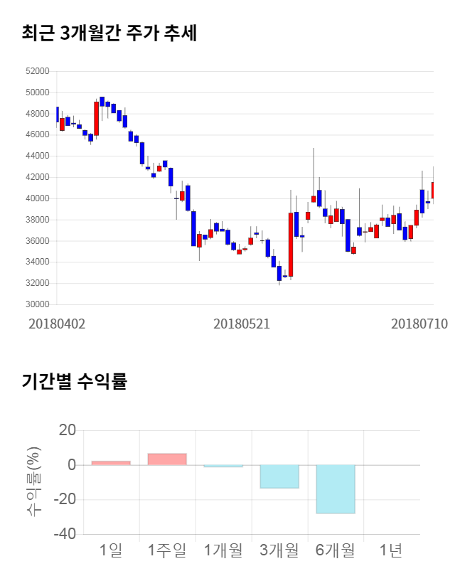 [그림 1] 최근 3개월 간 주가 추세 및 기간별 수익률