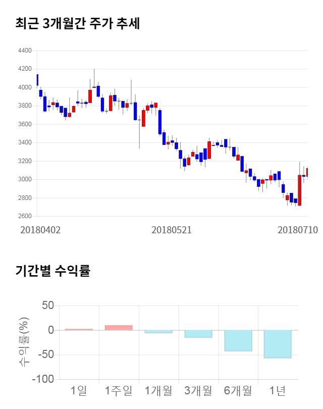 [그림 1] 최근 3개월 간 주가 추세 및 기간별 수익률