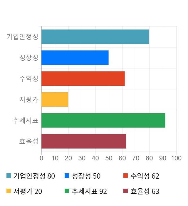 AI 인공지능 종목 분석 시스템을 이용해 성장성, 수익성, 효율성, 안전성, 저평가성, 추세 등 주가 수익률에 영향을 줄 수 있는 6가지 핵심 투자 지표를 점수화하여 종목의 투자 매력도를 계산해보았다.