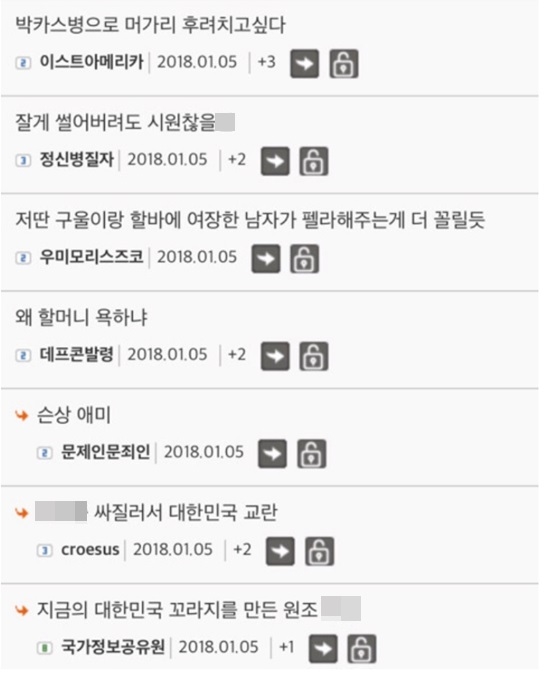 일베 회원들이 늘 그렇듯 특정지역과 전직 대통령들을 모욕하는 댓글도 다수 보였다. 전 대통령 모친의 사진을 올리고 성매매 여성과 연관시켜 욕설을 퍼붓는가 하면 "지금의 대한민국 꼬라지를 만든 원조 XX"이라고 적기도 했다.