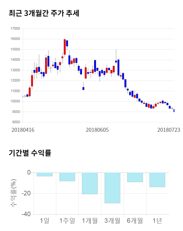 [그림 1] 최근 3개월 간 주가 추세 및 기간별 수익률