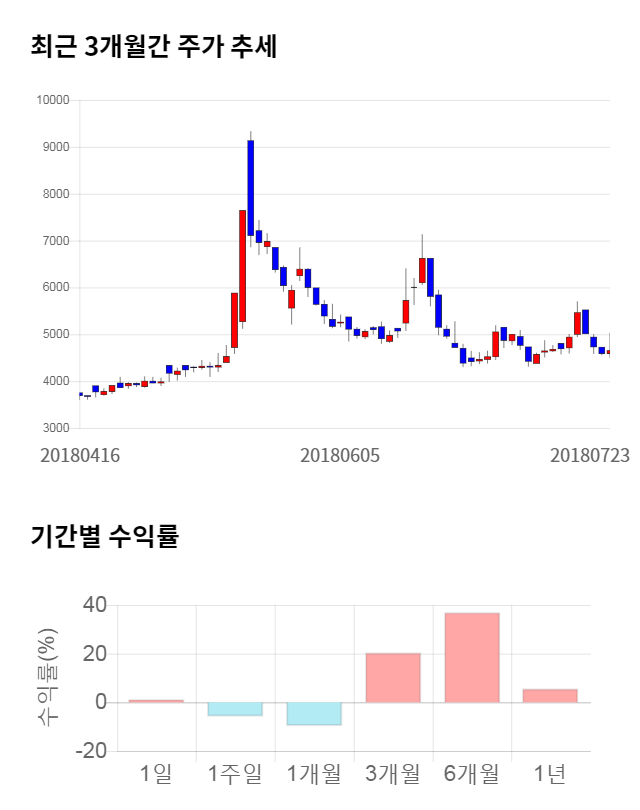 [그림 1] 최근 3개월 간 주가 추세 및 기간별 수익률