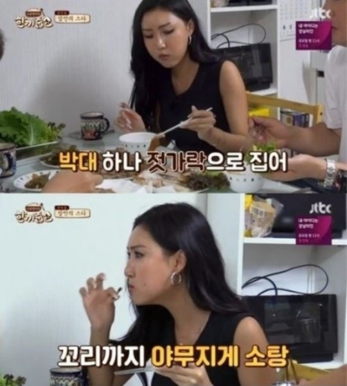 이때 화사는 집주인이 만들어준 `박대 구이`를 야무지게 뜯으며 시청자들의 눈길을 사로잡았다. 손으로 박대를 붙잡고 생선살을 야무지게 발라먹는 그의 모습은 절로 보는 이들의 군침을 삼키게 만들었다.
