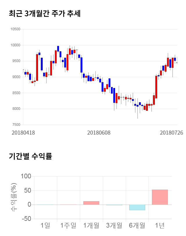 [그림 1] 최근 3개월 간 주가 추세 및 기간별 수익률