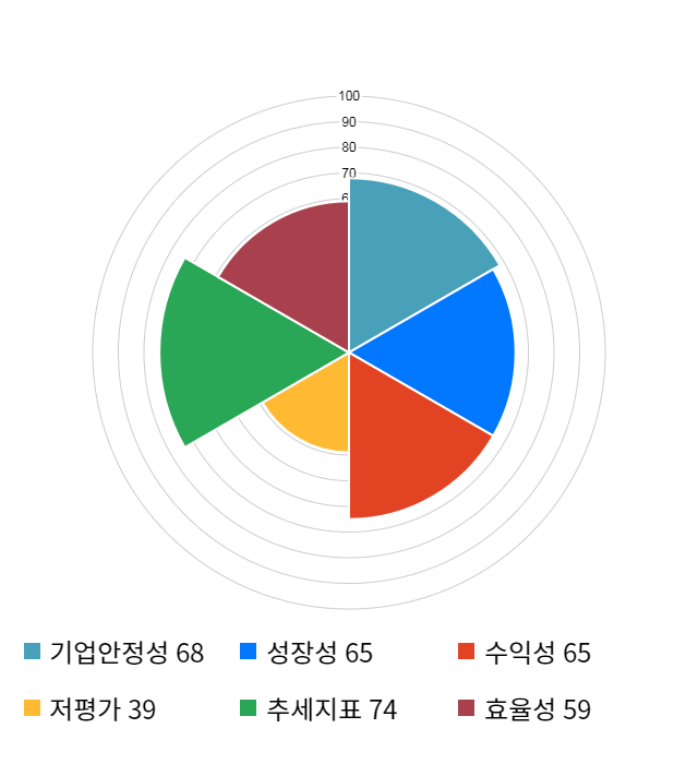 AI 인공지능 종목 분석 시스템을 이용해 성장성, 수익성, 효율성, 안전성, 저평가성, 추세 등 주가 수익률에 영향을 줄 수 있는 6가지 핵심 투자 지표를 점수화하여 종목의 투자 매력도를 계산해보았다.