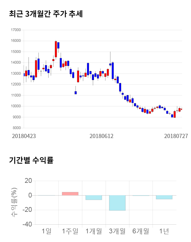 [그림 1] 최근 3개월 간 주가 추세 및 기간별 수익률