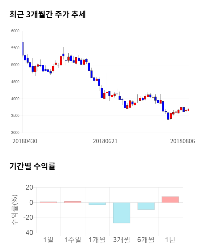 [그림 1] 최근 3개월 간 주가 추세 및 기간별 수익률