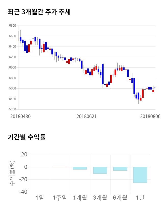 [그림 1] 최근 3개월 간 주가 추세 및 기간별 수익률