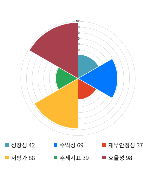 AI 인공지능 종목 분석 시스템을 이용해 성장성, 수익성, 효율성, 안전성, 저평가성, 추세 등 주가 수익률에 영향을 줄 수 있는 6가지 핵심 투자 지표를 점수화하여 종목의 투자 매력도를 계산해보았다.