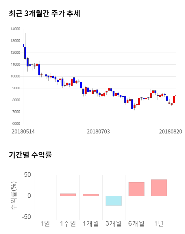 [그림 1] 최근 3개월 간 주가 추세 및 기간별 수익률