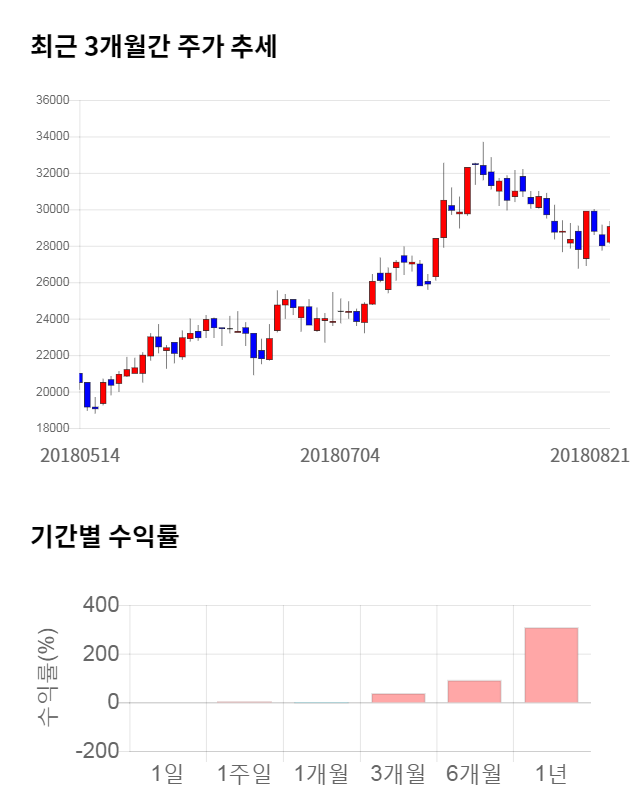 [그림 1] 최근 3개월 간 주가 추세 및 기간별 수익률