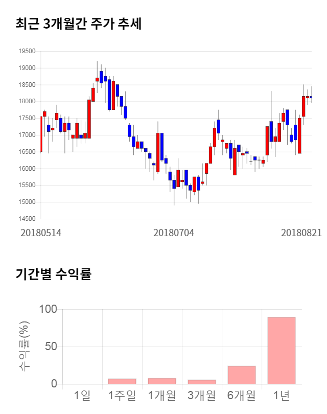 [그림 1] 최근 3개월 간 주가 추세 및 기간별 수익률