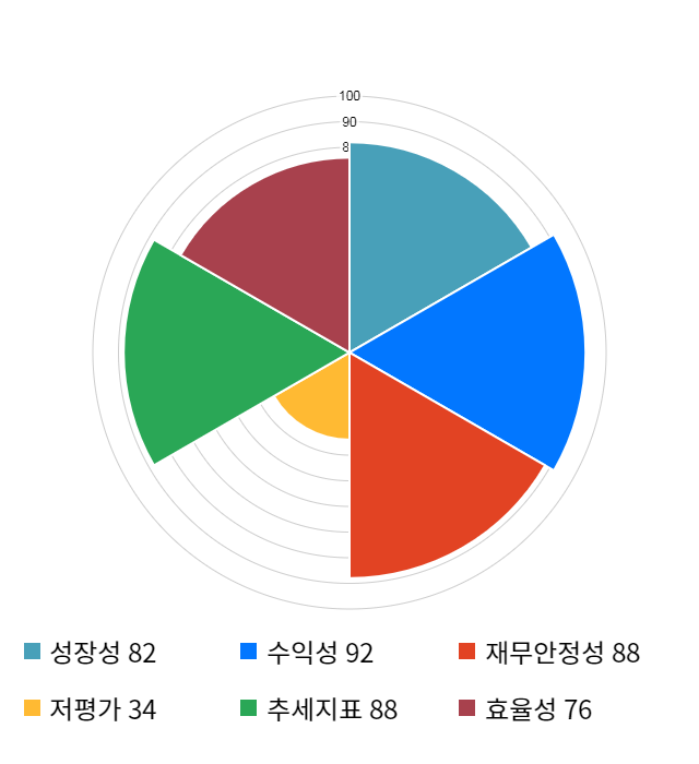 (위의 AI인공지능 점수는 재무 데이터를 기반으로 전체 상장 종목과 비교/분석하여 도출한 점수로 높은 점수가 반드시 높은 수익률을 보장하지 않습니다. 위의 자료는 당사의 추천 종목이 아니며, 투자 시 참고용으로 제시해드리는 것입니다. 핵심투자지표를 결합해 종목의 투자매력도를 종합 계산한 "인공지능 투자점수"는 "거장들의 투자공식" 앱에서 확인하실 수 있습니다.)