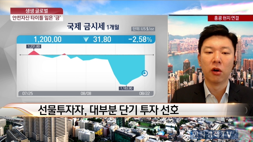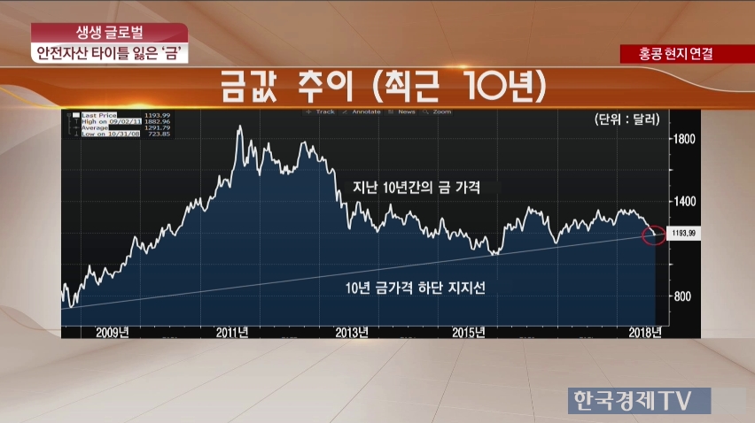 오기석: 크게 보면 두 가지 배경이 있다고 생각합니다. 우선은 무역분쟁으로 인한 불안감이 가져오는미국 달러 강세가 주요한 원인입니다. 미국 달러는 금과 함께 대표적인 안전자산의 지위를 가지고 있는 글로벌 기축통화인데요.최근 이머징 마켓의 통화들이 강하게 평가 절하되면서 달러로 자금이 몰리는 상황이 되었습니다.터키 리라화 및 아르헨티나 페소, 남아공의 랜드화 등이 대폭 평가 절하되는 상황하에서 투자자들에게 현재 안전자산은 미국 달러화 뿐이다 라는 논리로 이머징 마켓 통화 매도, 달러 매수 포지션을 구축하기 시작했습니다. 달러가 강세가 되다보니 달러의 대체재인 금의 경우는 상대적으로 약세를 기록하게 되었구요. 이 과정에서 헤지펀드들은 금 선물 매도 포지션을 지난 10년래 최대 수준까지 늘려가고 있는 상황입니다.