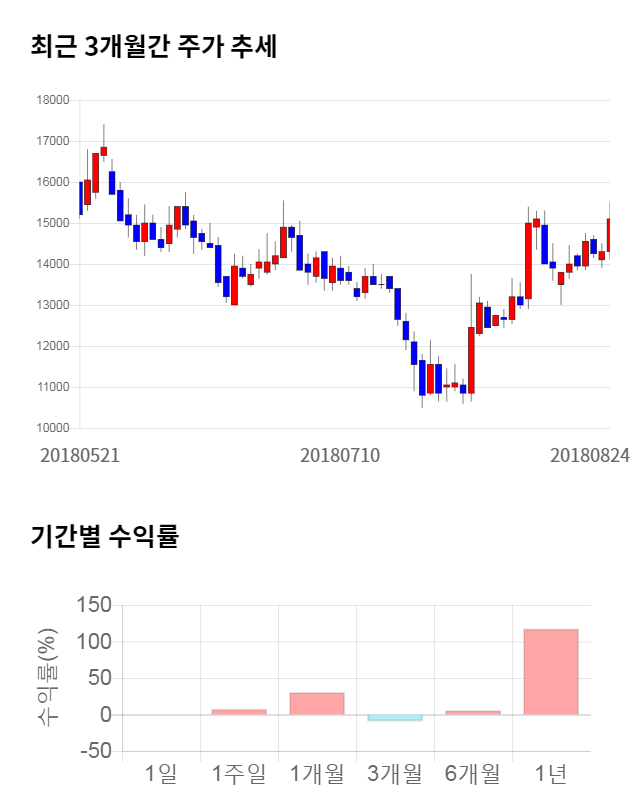 [그림 1] 최근 3개월 간 주가 추세 및 기간별 수익률