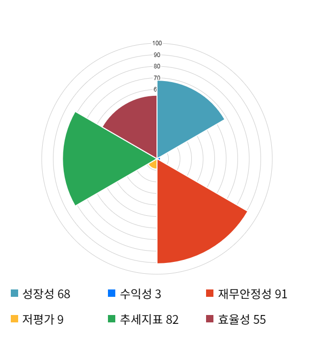 AI 인공지능 종목 분석 시스템을 이용해 성장성, 수익성, 효율성, 안전성, 저평가성, 추세 등 주가 수익률에 영향을 줄 수 있는 6가지 핵심 투자 지표를 점수화하여 종목의 투자 매력도를 계산해보았다.